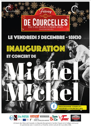 Pour l’ouverture des Fééries Courcelloises 2025, le groupe « Michel Michel (ou presque) » se produira à 20h30 avec les plus grands titres des chanteurs qui s’appellent Michel (ou presque) : Sardou, Delpech, Fugain, Polnareff, Jonasz, Berger et d’autres.