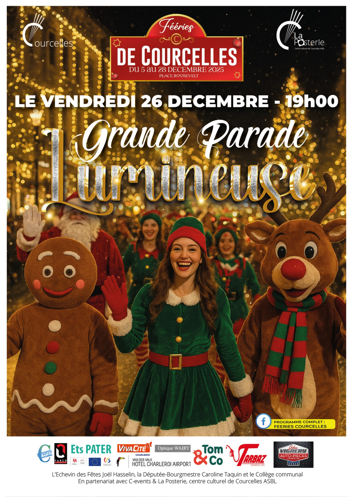 Rendez-vous le 26 décembre dès 19h sur la place Roosevelt pour la Parade Lumineuse, qui illuminera Courcelles de mille couleurs.