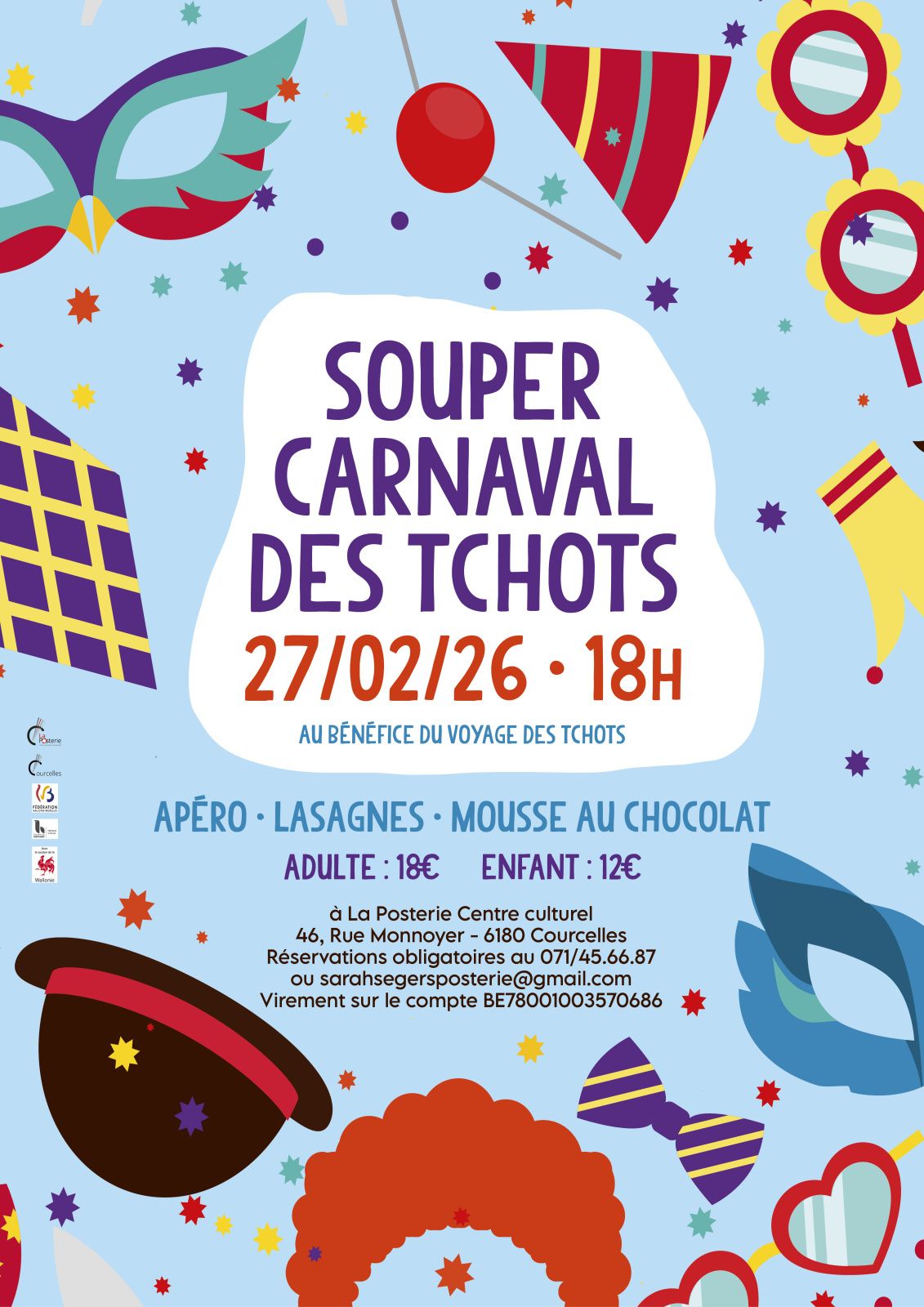 Venez partager une soirée conviviale et haute en couleurs à l’occasion du Souper Carnaval des Tchots.