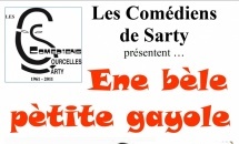 Les Comédiens de Sarty présentent "Ene bèle pètite gayole", vaudeville de Michel Robert, mise en scène par Michel Meurée à la salle du Belvédère à Courcelles ! Le samedi 28 novembre à 19h00Le dimanche 29 novembre à 17h00Le dimanche 6 décembre à 17h00 Réservations : 071/450 495 ou 0479/219 578